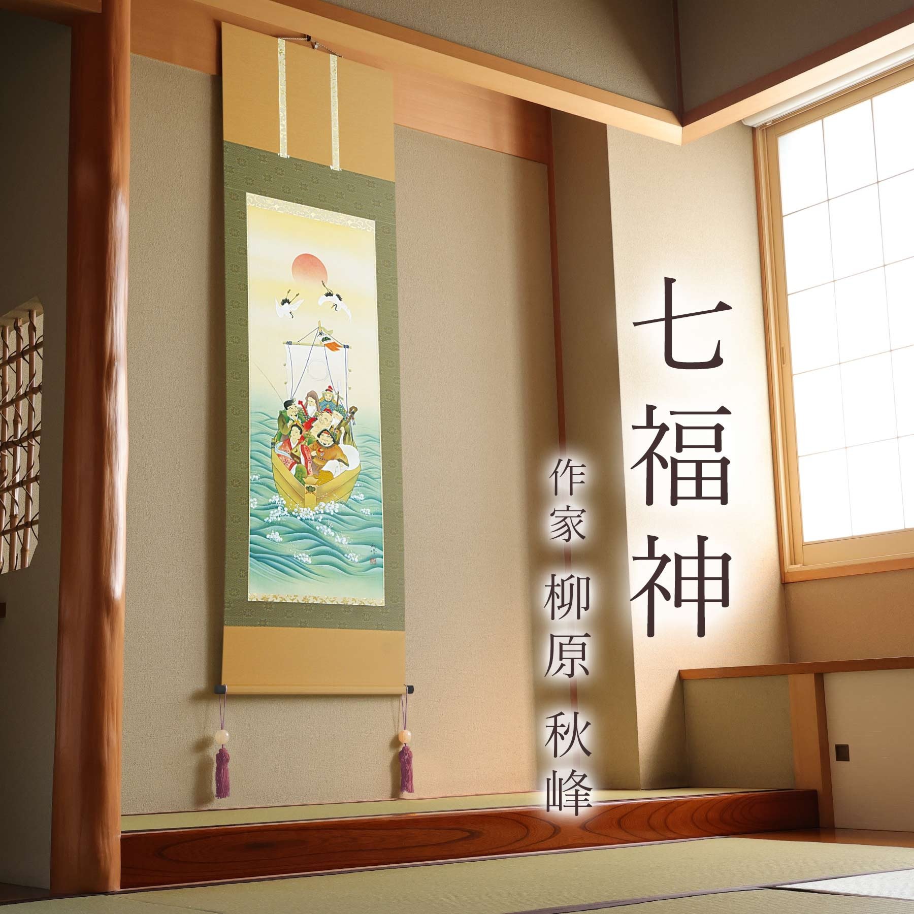 - 掛け軸「七福神」 柳原秋峰 尺五立 サイズ:54.5×190cm 桐箱付 掛け軸 和室 おしゃれ 日本画 表装 床の間