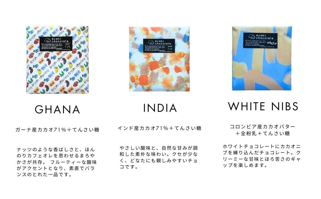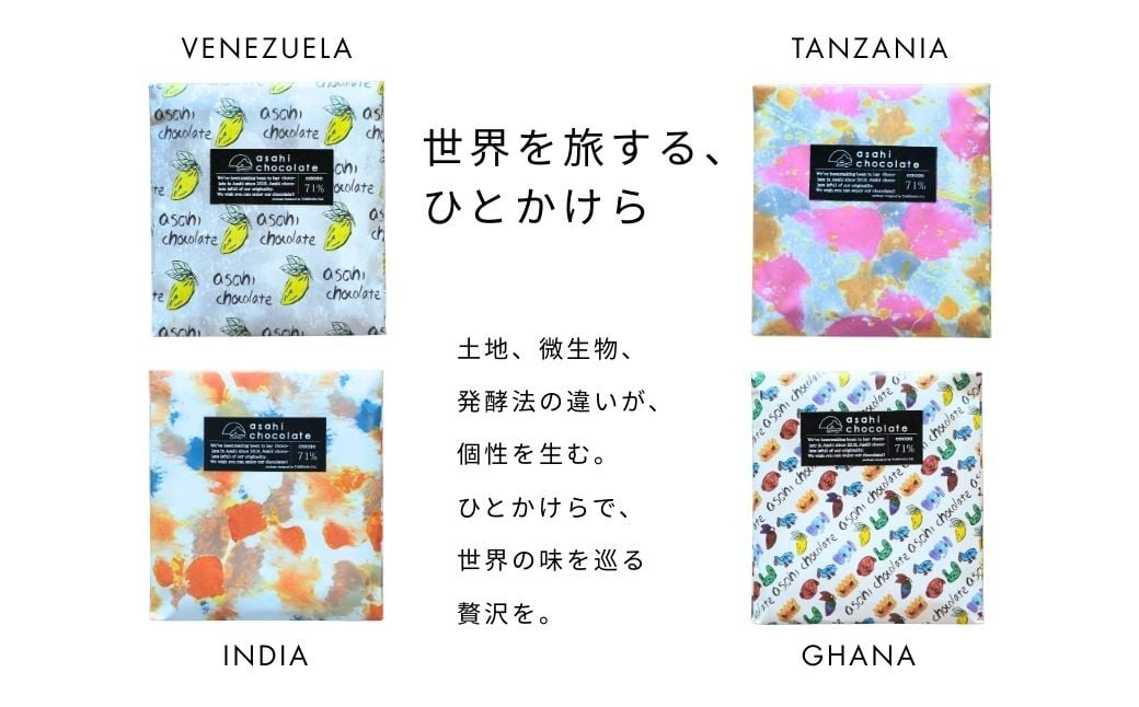 - ビーントゥバー チョコレート 3種セット(ベネズエラ・ガーナ・タンザニア) ハイカカオ 高カカオ 71% 無添加 てんさい糖使用 手作り 福祉施設製造 ギフト プレゼント あさひチョコレート