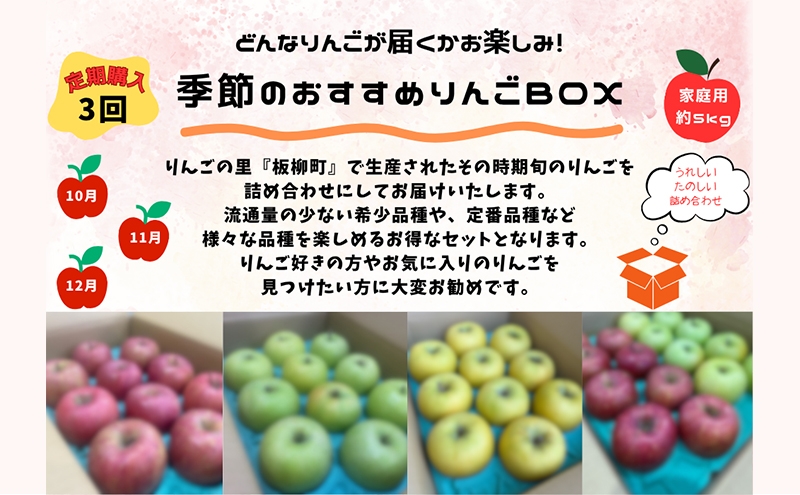 【定期購入3回】【どんな品種が届くかお楽しみ】季節のおすすめりんごBOX/家庭用/詰め合わせ/10月・11月・12月/約5kg 青森県 りんご リンゴ 林檎 フルーツ くだもの 果物