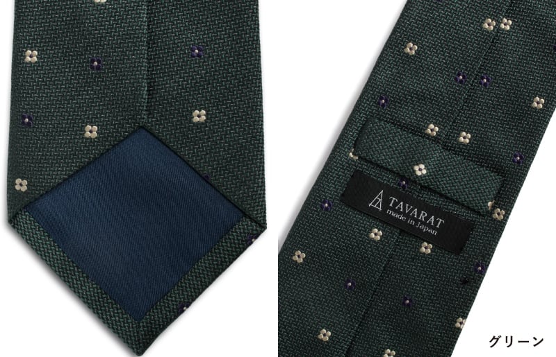 - シルクネクタイ(花柄ドット グリーン)