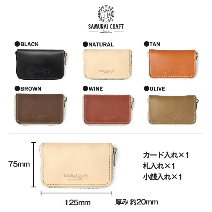 サムライクラフト ラウンドファスナーウォレット<全6色>(125mm×75mm×厚み20mm) レザー 革 本革 レザー製品 革製品 財布 サイフ ギフト 日本製 手縫い ハンドメイド ファッション 小物 Samurai Craft【株式会社Stand Field】ta279