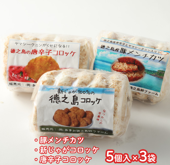 【 マツコの知らない世界 で紹介されました!】【2026年4月以降発送開始】徳之島コロッケ 2種&徳之島の豚メンチカツ詰め合わせセット 計15個 5個入り×3袋 コロッケ メンチカツ マイナビ