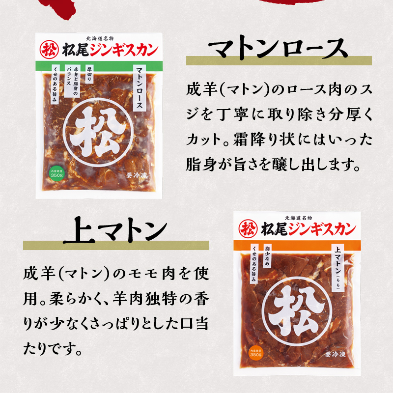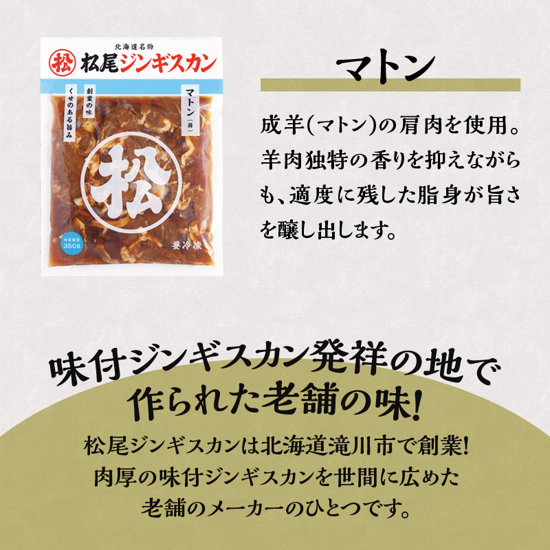 - 【松尾ジンギスカン】味付マトン三昧!3種食べ比べ 北海道 滝川 ソウルフード 成吉思汗 BBQ 肉 焼き肉 焼肉 バーべキュー ラム マトン ラム肉 羊 羊肉 ジンギスカン タレ 味付 個包装 冷凍 おすすめ
