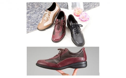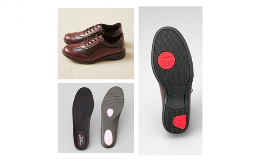 - 【PIERRE RICCI】ピエールリッチ やわらか山羊革5E快適軽量レディースシューズ ワイン×ダークブラウン(婦人靴)24.5cm [№5990-7310]0224