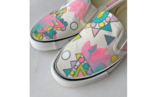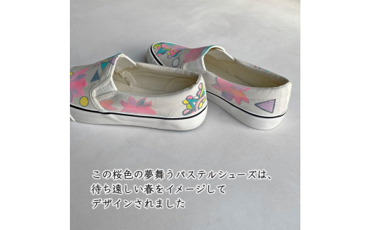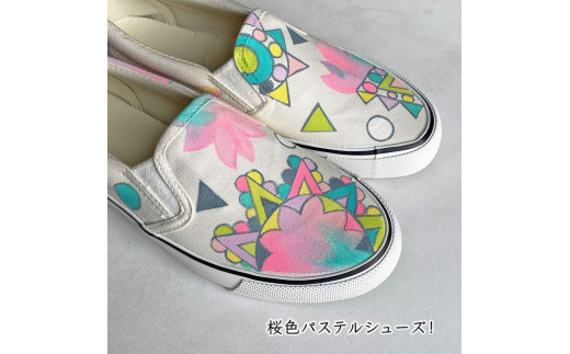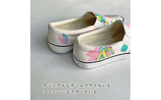 - 手描きスニーカー「sakura S」 スリッポン ワイズ 2E 23.5cm 【受注制作】