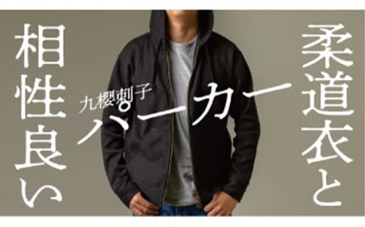 【Mサイズ】柔道衣メーカーが織り上げた生地で作る九櫻刺子パーカー 黒
