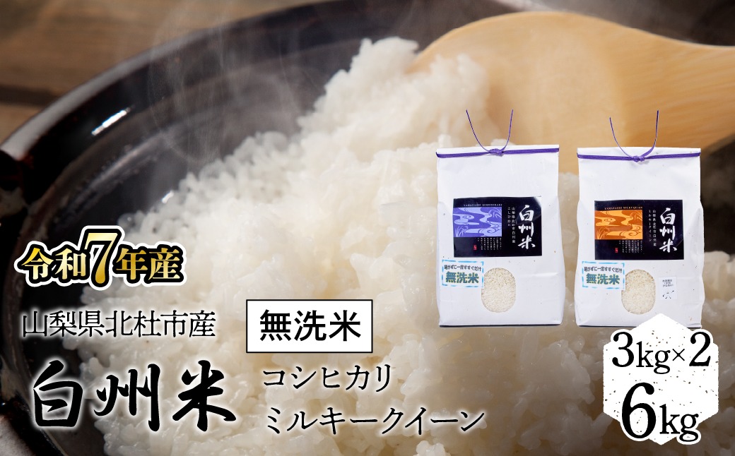 - 【令和7年産】山梨ふるさと米(無洗米) 6kgセット FCW001