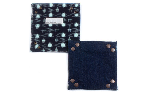 デニム備後絣トレイ(小)#インディゴ / 今昔 生地 コラボ かすり 小物入 折り畳み 広島県 特産品 No.281