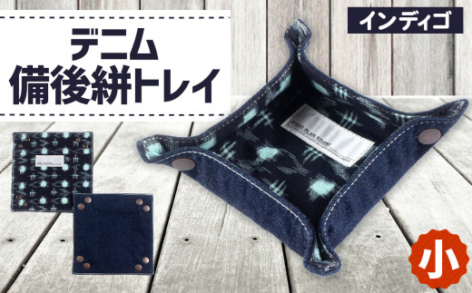 - デニム備後絣トレイ(小)#インディゴ / 今昔 生地 コラボ かすり 小物入 折り畳み 広島県 特産品 No.281