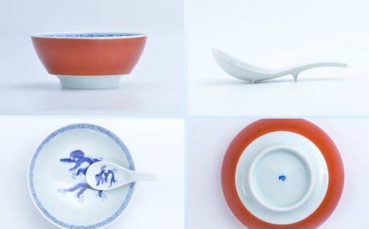 - 【有田焼】究極のラーメン鉢 レンゲセット(朱巻龍文)[A0033-0027]