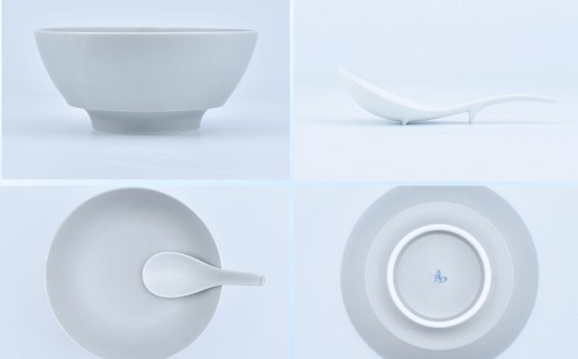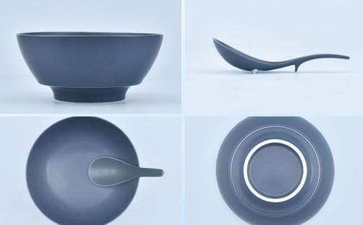 - 【有田焼】究極のラーメン鉢 レンゲ付ペアセット(グレイ・ネイビー)[A0033-0014]