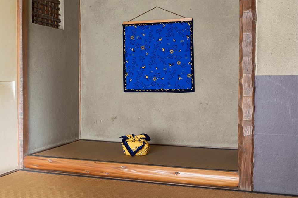 - 【丸和商業】綿小 風呂敷「UDKCふろしき~生命樹~」ブルー+イエロー2枚セット 261009_A-NN005