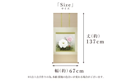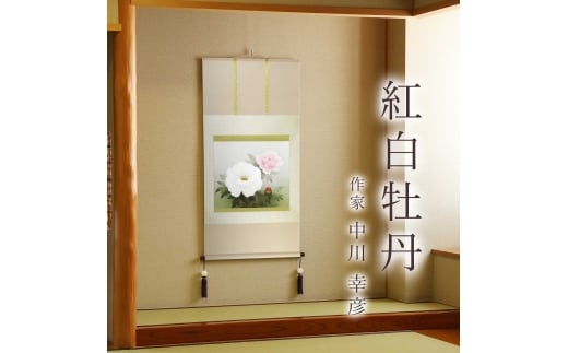 掛け軸「紅白牡丹」 中村幸彦 尺八横 サイズ:67×137cm 二重箱付 掛け軸 和室 おしゃれ 日本画 表装 床の間
