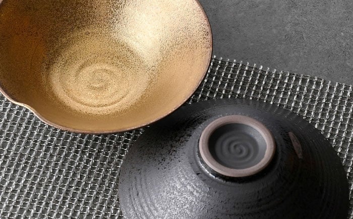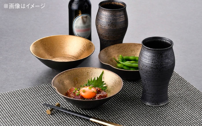 - 【波佐見焼】ビアカップ・鉢 ゴールド ブラック オリジナルセット 5点【陶もと/不二商店】 [NB150]