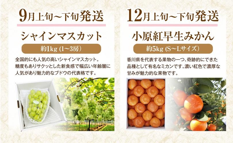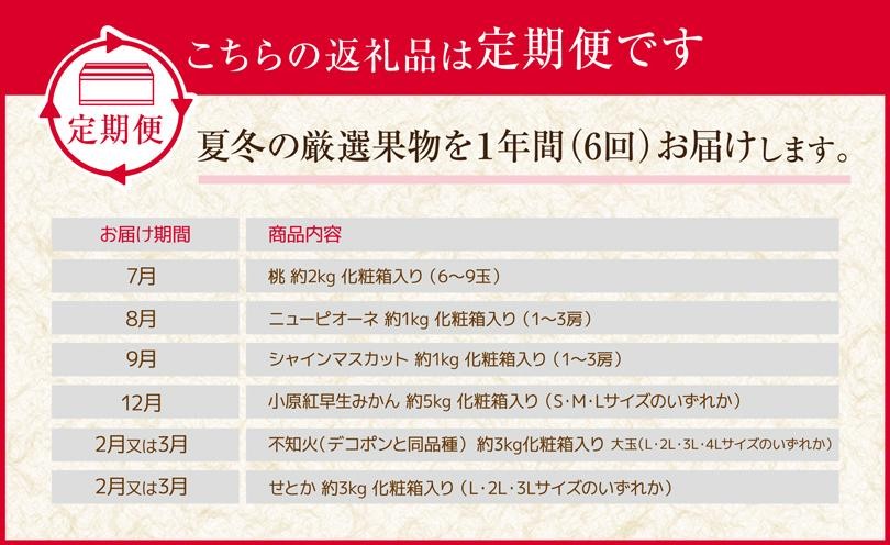 - 【定期便全6回】フルーツ定期便 (桃 ニューピオーネ シャインマスカット 小原紅早生みかん 不知火 せとか)【旬 人気 果物 くだもの もも ぶどう マスカット みかん でこぽん せとか 柑橘 香川県 さぬき市】