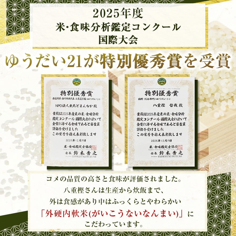 【予約受付!令和8年産 新米 】 九代目 八重樫哲哉 作 ゆうだい21 5㎏ 岩手県 北上市 G0209 米 白米 精米 新米 玄米 2026年産 2026年 R8年 令和8年 新米 やえがしてつや 八重樫哲哉 農家直送 生産者直送 直送