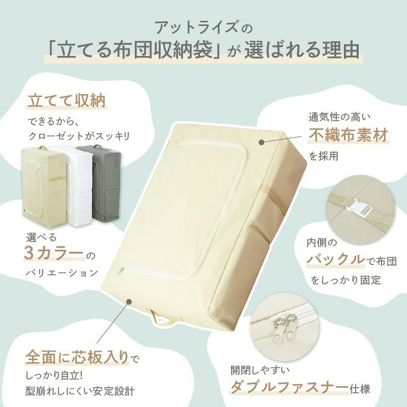 - < 立てられる > 布団収納 布団収納ケース 【カラー選択】〈 アットライズ ライズクリエイション 〉 収納袋 不織布 布団収納袋 取っ手付き 立てる布団収納袋 掛け布団 布団 自立 クローゼット 引越し 袋 ダブルジッパー ふとん 大きいサイズ コンパクト 収納できる 縦置き 持ち手 奈良県 奈良市