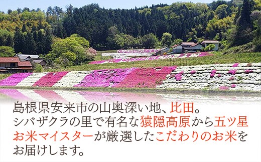 - 五ツ星お米マイスター厳選 猿隠高原比田米コシヒカリ 5kg 【令和7年産 こしひかり 清流 シバザクラの里 精米 白米 ご飯 お米 美味しい 安心 安全 沼田米穀店 島根県 安来市】【16-NB-04】