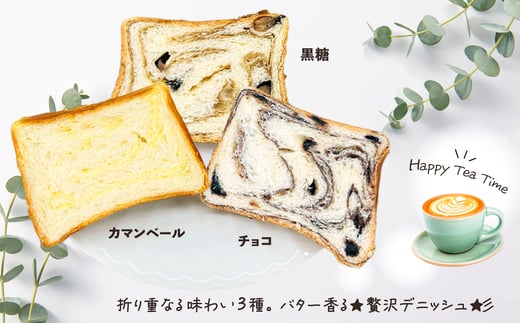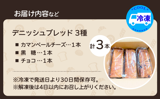 デニッシュブレッド(3種各1本入り) 40P3009 / 東北 秋田 大館 ギフト プレゼント 贈り物 母の日 父の日 敬老の日 誕生日 記念日 食パン パン デニッシュ カマンベールチーズ チョコ 黒糖 菓子 食事 惣菜パン おやつ