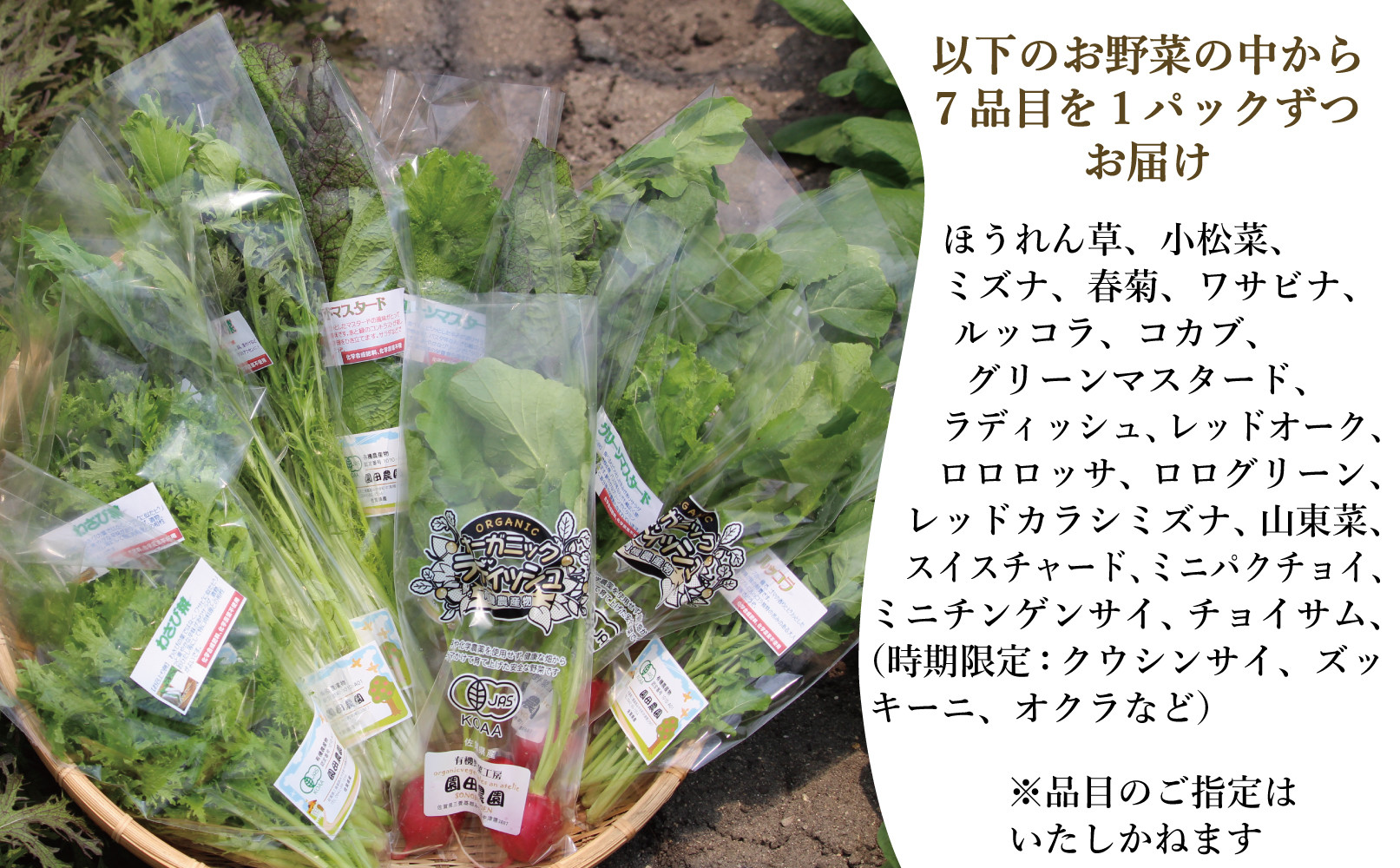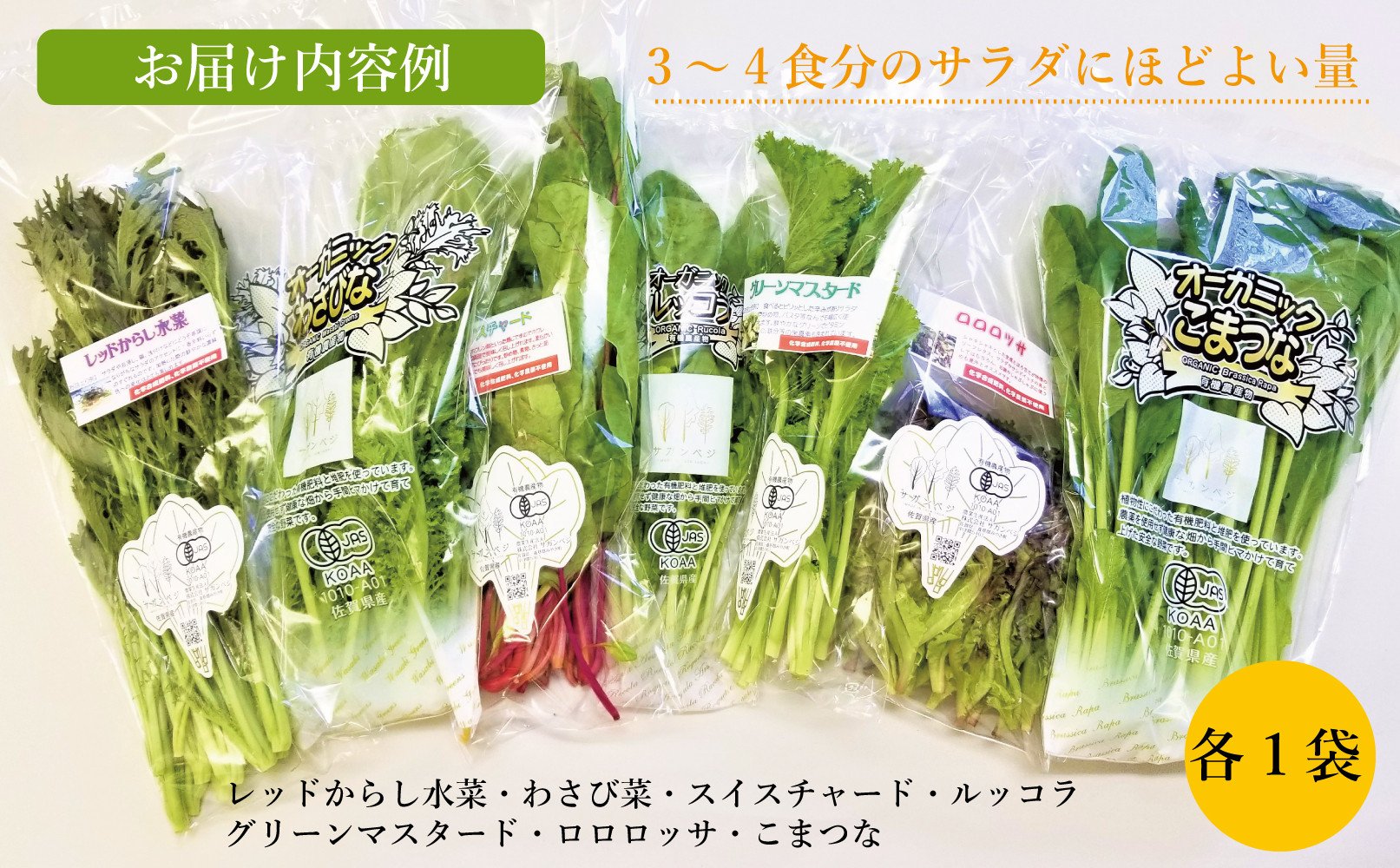 【セット】オーガニックサラダミニセット【植物性肥料と植物性追肥を使って育てた葉野菜ブランド】葉野菜7品目×1パック