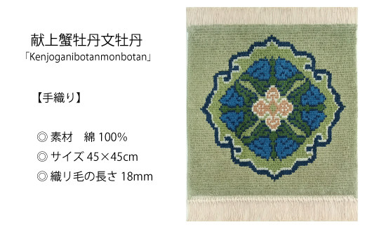 - 鍋島緞通【手織り】本家鍋島緞通 献上蟹牡丹文牡丹 「Kenjoganibotanmonbotan」