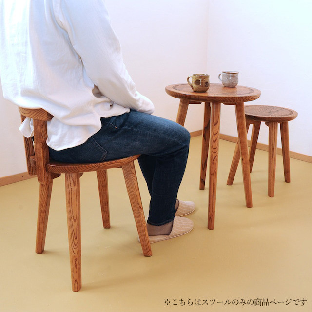 手彫りの丸スツール・φ33×高さ42cm【国産クリ使用・着色オイル仕上げ】スツール 木製 手作り 椅子 インテリア シンプル ナチュラル リビング【大鹿野工房】