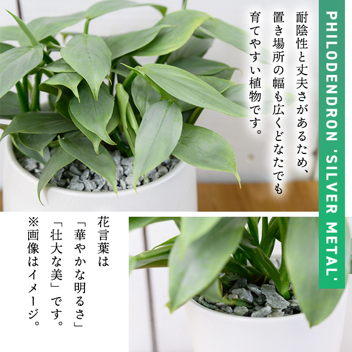 - <観葉植物>フィロデンドロン・シルバーメタル(6号) (陶器鉢・受け皿付)【m24-14】【アイエヌエー】