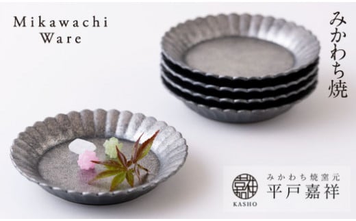 - 〈平戸嘉祥窯〉銀錆プラチナ菊割皿5枚セット