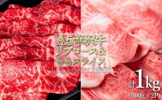 「A5ランク」米沢牛リブロース&もも肉スライス計1kg_B118