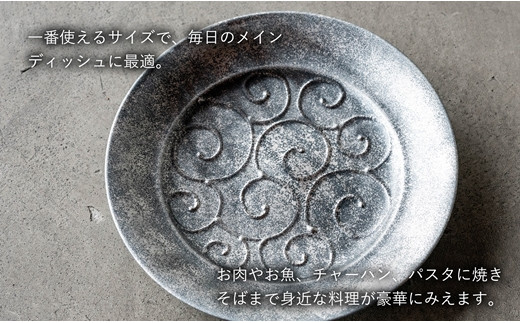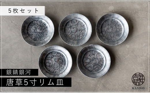 〈平戸嘉祥窯〉銀錆銀河 唐草5寸リム皿(5枚)