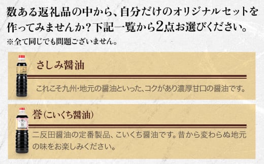 - 蔵工房・二反田醤油 A1.お選び 2点セット | 調味料 醤油 しょうゆ 刺身醤油 濃口醤油 昆布醤油 鰹だし めんつゆ かぼす醤油 椎茸だし 九州醤油 選べる 2点 セット 大分県 中津市