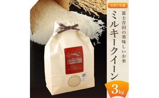 【令和7年産】富士吉田の美味しいお米 ミルキークイーン 3kg 無洗米 米 山梨米 もちもち お米 ミルキークイーン米 山梨 富士吉田