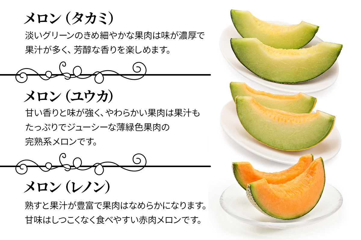 - 満喫! つがるメロン 食べ比べセット (タカミ・ユウカ・レノン) 各1.6kg 3玉セット|つがる市産 2026年産 令和8年 青森産 津軽 めろん 特産 果物 フルーツ 農福連携 [0669]