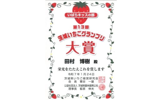【配送可能地域:指定あり】茨城いちごグランプリ 大賞&特別賞(茨城県知事賞)受賞!!いばらキッス1パック(250g) / いちご 果物 フルーツ オリジナル品種 新鮮 産地直送 高糖度 酸味 濃厚 ジューシー 甘酸っぱい 果汁たっぷり 茨城県 No.879