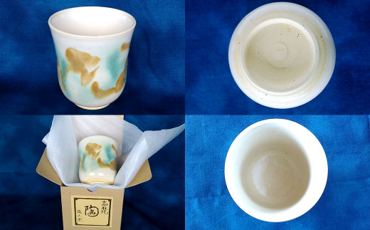 - 清水筑山作「高取焼 三彩湯呑(化粧箱入り)」 陶器 一点もの 手作り