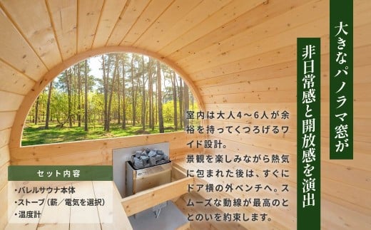 バレルサウナ ベンチ付きパノラマタイプ | サウナ バレルサウナ 癒し ととのう 自律神経 パノラマ グランピング 外気浴 sauna 別送 ロウリュ ロウリュウ サ活 リラックス サウナー 家庭用 サウナ小屋 サウナライフ 非日常 群馬県 前橋市
