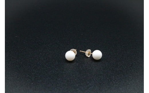 白Tama ピアス 6.1mm~6.5mm | 珊瑚 白珊瑚 サンゴ さんご 白サンゴ ピアス ゴールド アクセサリー 高知県 南国市