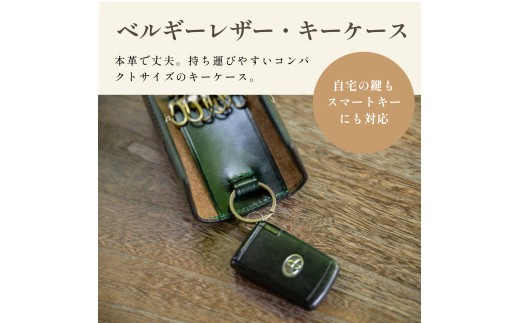 - 〈本革〉ベルギーレザーキーケース グリーン(無料名入れ 刻印) レザー キーケース 鍵 ルガトショルダー ギフト 刻印無料 名入れ無料