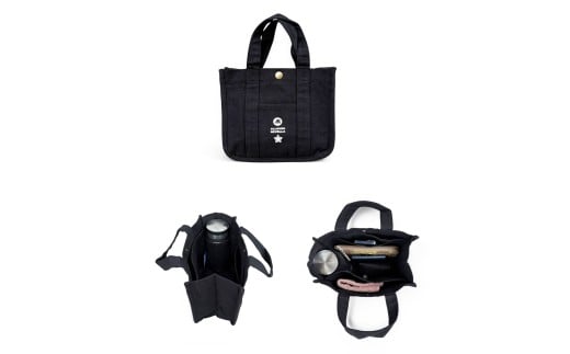 - 005-132 【ブラック】水筒が倒れない仕切り帆布ミニトートバッグ バッグ カバン ファッション 水筒が倒れない仕切り帆布 ミニトートバッグ アウトドア おしゃれ 静岡県 牧之原市 REVOLLA