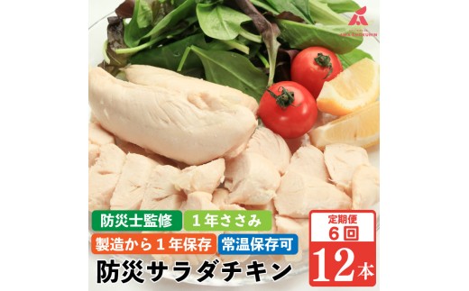 - 防災グッズ 非常食 防災用 ささみ サラダチキン 定期便 6回 12本 1年ささみ 常温保存 保存食 備蓄 防災 国産 鶏肉 鳥肉 とりにく 鶏 とり チキン タンパク質 プロテイン ダイエット 健康 美容 トレーニング ジム スポーツ お取り寄せ グルメ 送料無料 徳島県 吉野川市 有限会社阿波食品