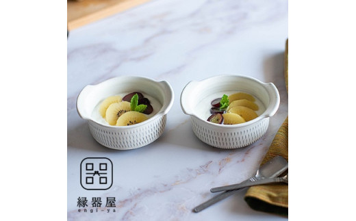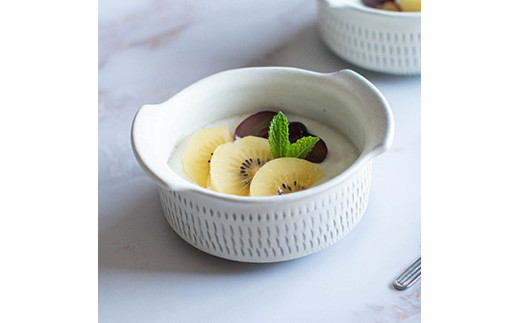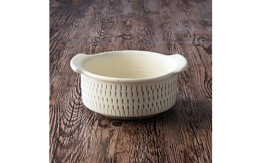 - AA115 小石原焼 カネハ窯 飛び鉋グラタン皿セット(白マット×S)
