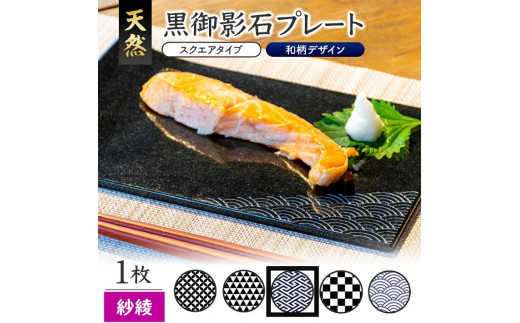 - 天然黒御影石 スクエアプレート 1枚 【和柄彫刻(紗綾)】 SE0246