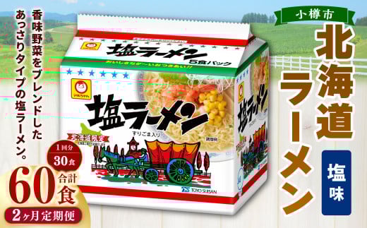 - 【2回定期便】塩ラーメン 北海道 5食×6個(1ケース) 計60食 ラーメン 拉麺 しおラーメン 塩 しお インスタント インスタントラーメン 即席 即席麺 即席袋麺 定期便 小樽市 常温