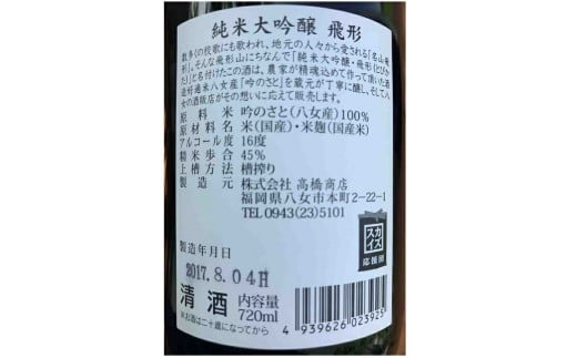 【ギフト用】<純米大吟醸>飛形<純米吟醸>八峰【720ml】2本セット(ギフト対応)