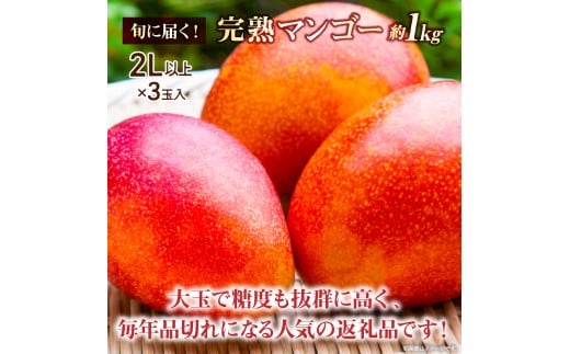 - 【数量限定・先行受付】厳選宮崎完熟マンゴーよくばり3玉 計1kg程度(フルーツ 2026 マンゴー 先行予約 完熟マンゴー 宮崎 小林市 果物 人気)