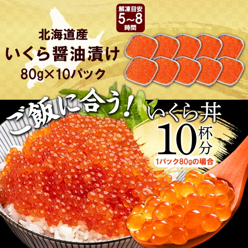 3347. いくら醤油 80g×10個 いくら醤油漬け イクラしょうゆ漬け いくら イクラ 海鮮 魚介 魚卵 送料無料 北海道 弟子屈町