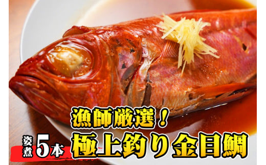 【漁師厳選!】極上釣り金目鯛 姿煮 5本セット つりきんめ 極上 至極 つりきんめ キンメダイ きんめ鯛 1尾まるごと 5人前 ごちそう 祝い膳 贈答品 ギフト 中元 歳暮 湯せん 電子レンジ 簡単調理 秘伝 千葉県 銚子市 株式会社仲野水産