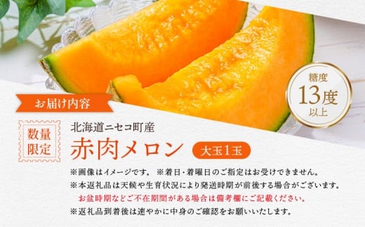 【北海道ニセコ町産】赤肉メロン大玉1玉 <数量限定・2026年早期予約・7月下旬より出荷予定>【02035】