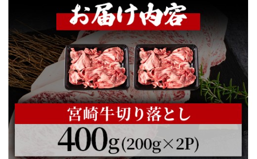 <宮崎牛切り落とし 400g(約200g×2パック)>国産 4等級以上 A5ランク A4ランク 黒毛和牛 牛肉 霜降り ギフト お中元 しぐれ煮 牛丼 贈り物 贈物 小分け 使いやすい 三股町 国産 特産品 精肉 牛肉 セット 詰め合わせ 個包装【MI701-hr】【肉の豊楽】