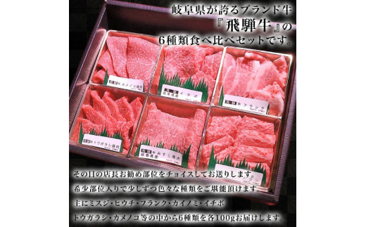 【4月発送】【飛騨牛】食べ比べ 焼肉盛り合わせ6種 各100g / 飛騨牛 ひだぎゅう 焼肉 やきにく 牛肉 和牛 ミスジ イチボ 飛騨牛 岐阜市/丸福商店 [ANBO027-4]